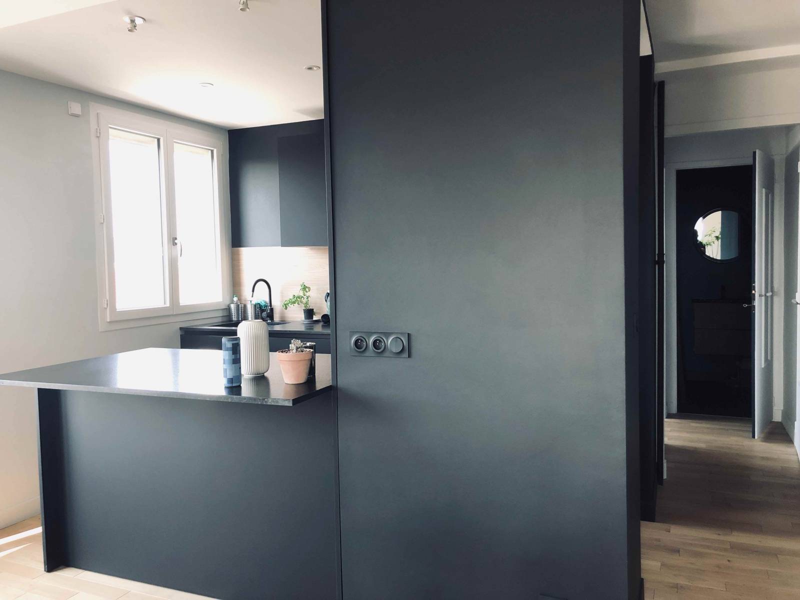 - la fourniture et l'installation d'une jolie cuisine noire mat