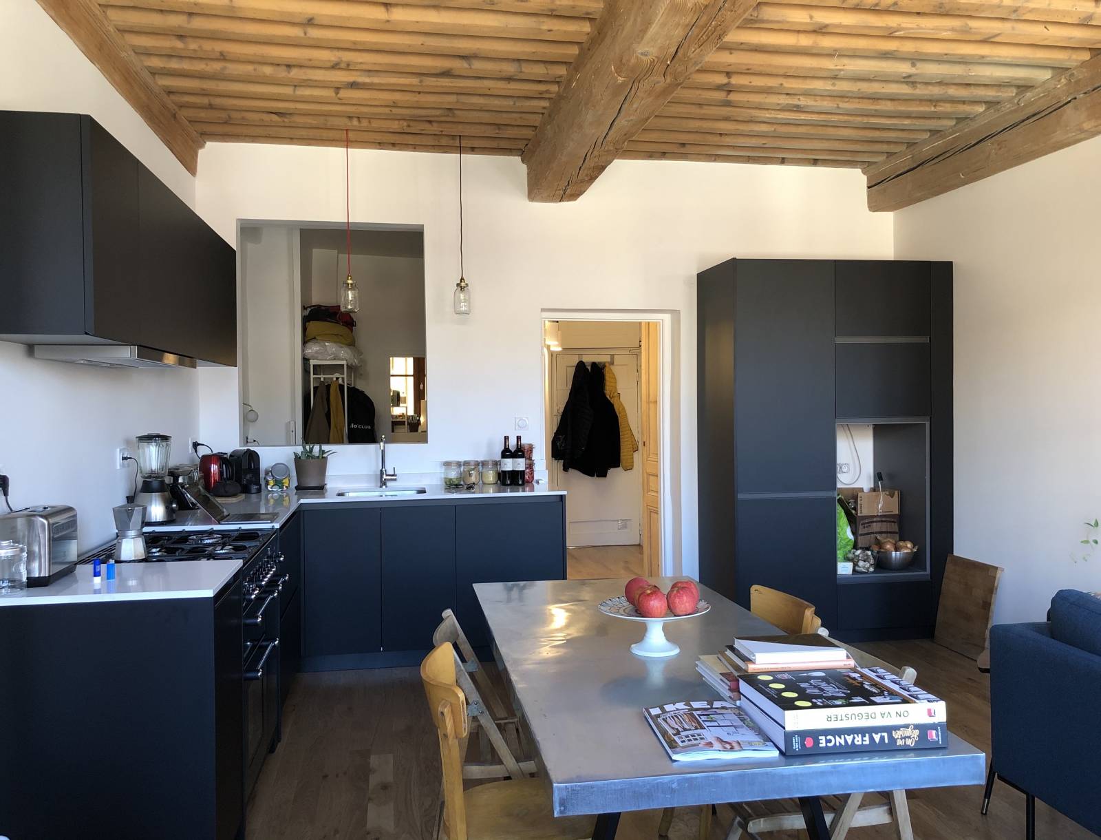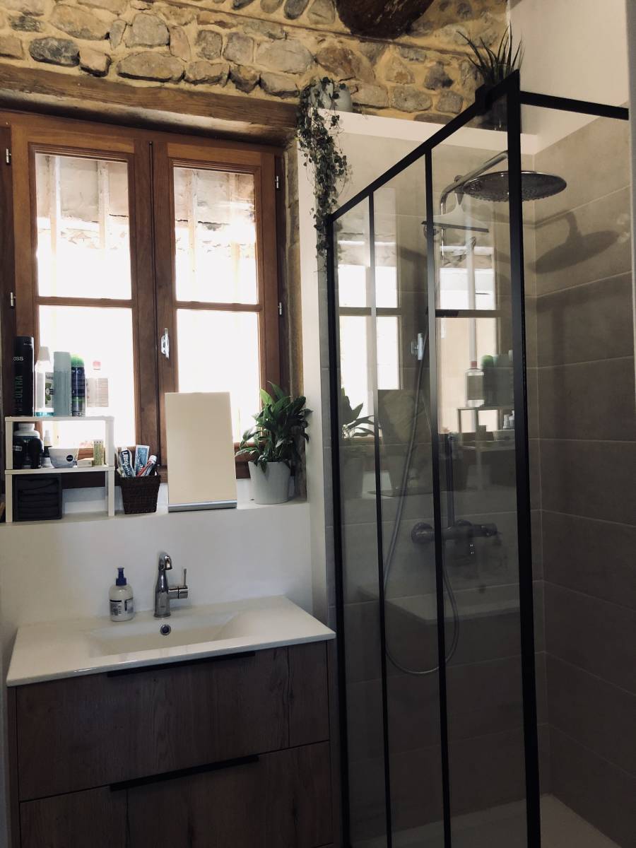 Les travaux de rénovation d'intérieur dans cet appartement de la Croix-Rousse ont également concerné la fourniture er la pose d'une très belle cuisine sur-mesure et salle de bain, et la réfection de l'ensemble des peintures.